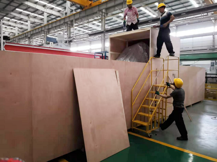 NG电子游戏厂家——LVL材质11.5米9T大型木箱包装打包现场